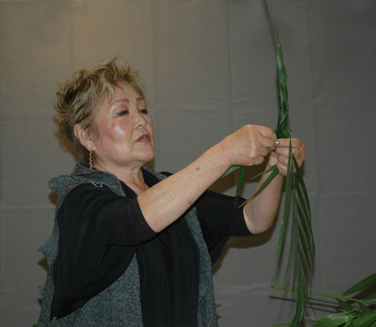 Katsuko Thielke demonstrating weaving